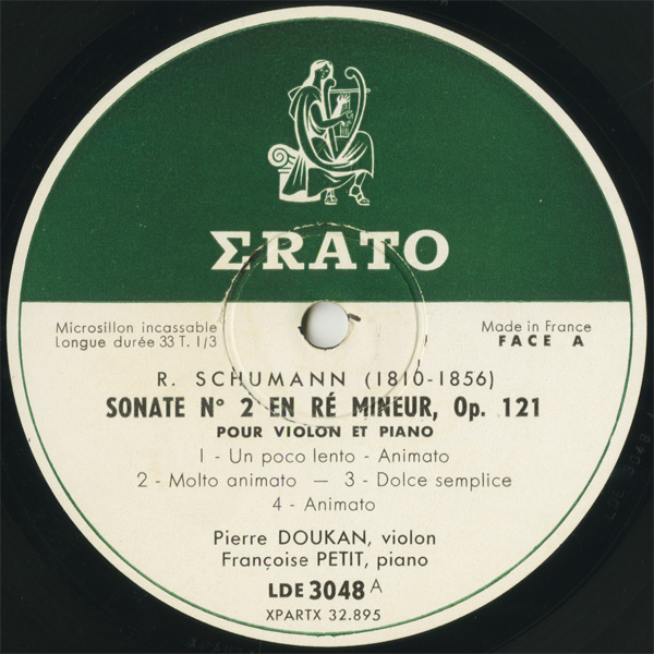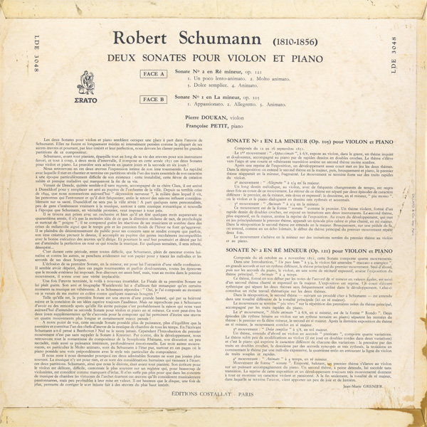 Eratoモノラル期のヴァイオリン名盤,ドゥーカンは4枚の録音を残した,浅いキズ少々だが良コンディション,ジャケット裏汚れ他多少傷み