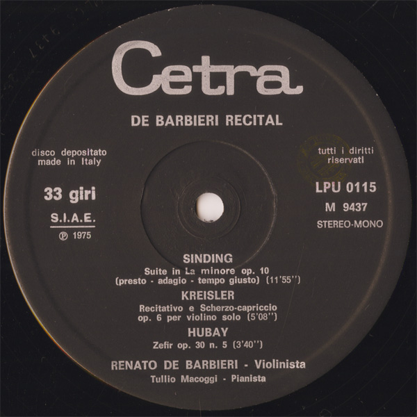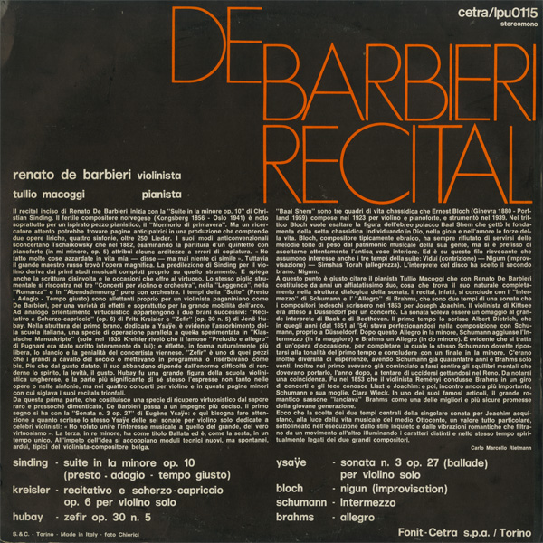 レナート・デ・バルビエリ(vn) トゥリオ・マコージ(pf)