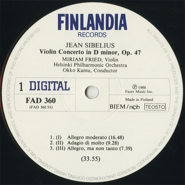 ミリアム・フリード(vn) オッコ・カム(cond) ヘルシンキpo.