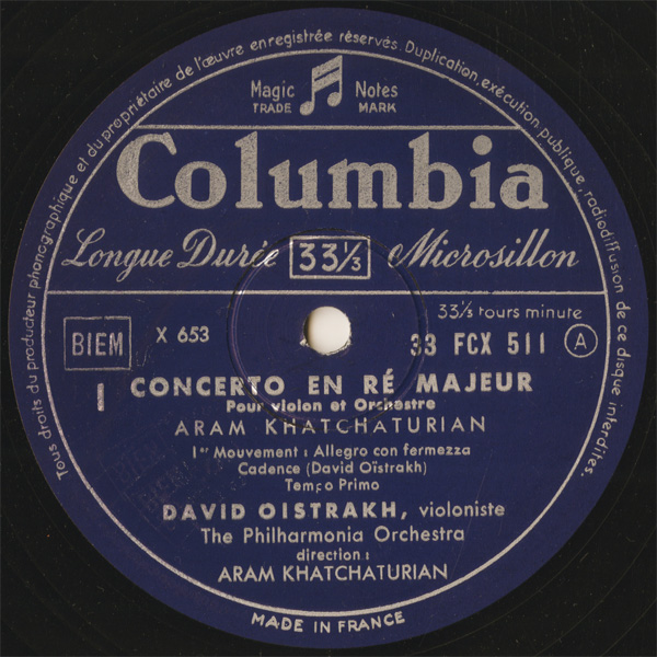 ダヴィッド・オイストラフ(vn) アラム・ハチャトゥリアン(cond) po.