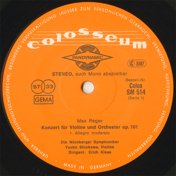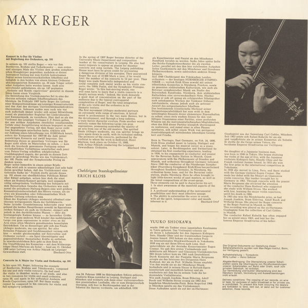 デビュー録音の一つ(DGG録音がほぼ同時期) ,シュトロス仕込みのレーガーは聴きもの,盤外周ソリ(主に片面) ,外周付近目立たないランブルノイズ少々