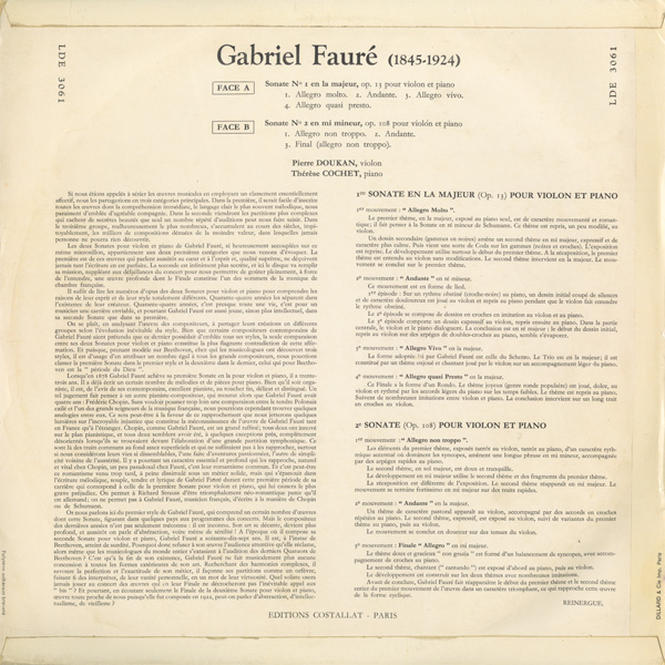 フォーレ ヴァイオリン・ソナタ第1番 op. 13,2番 op. 108