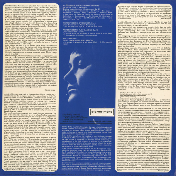 シェーンベルク 《月に憑かれたピエロ》,ウェーベルン 2つの歌 op. 8,5つのカノン op. 16,ブーレーズ インプロヴィゼーション