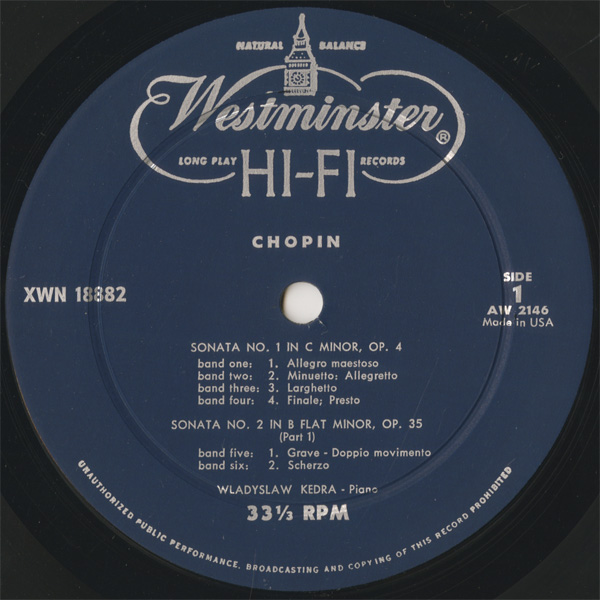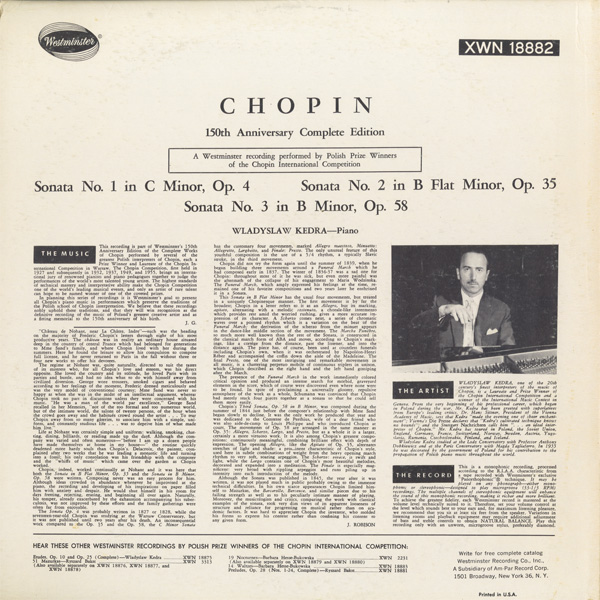 これぞ隠れた名演,ケンドラの早世が悔やまれる,未完に終わったWestminsterによる第2のショパン全集のうちの1枚,ソナタにはステレオ発売があった(ステレオが無いもの、ステレオしか無いものなど様々だった),浅いキズ軽微なプレスミス少々