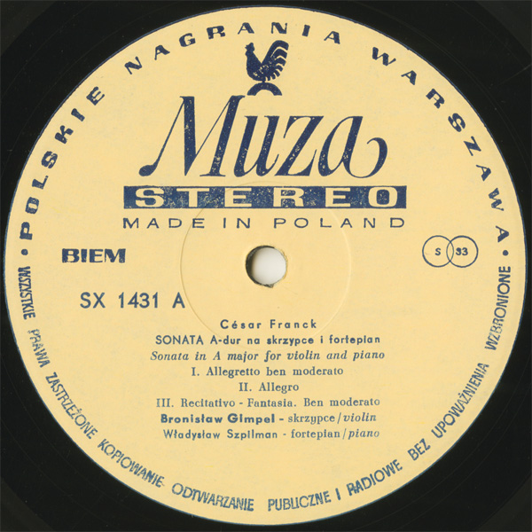 ブロニスワフ・ギンペル(vn) ウワディスワフ・シュピルマン(pf)