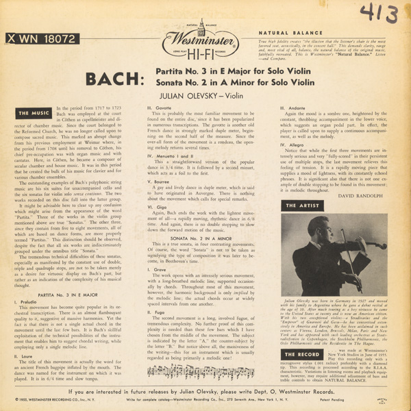 バッハ 無伴奏ヴァイオリン・ソナタ第2番 BWV 1003,パルティータ第3番 BWV 1005
