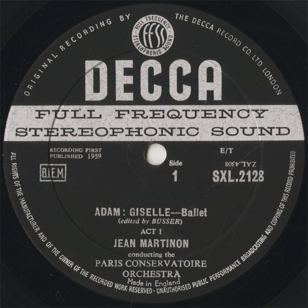 これは見事な録音,ウィルキンソンによるパリ録音,パリ音楽院管ゆえかマルティノンの本領が発揮されている,マルティノンはコレクターの間では評判よろしからぬが個人的にはとても好きな指揮者,M. フォンティーンの写真をあしらったDeccaらしからぬジャケット,盤良コンディション