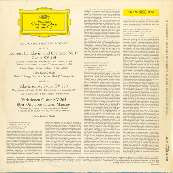 モーツァルト ピアノ協奏曲第13番 KV 415,ピアノ・ソナタ KV 280,きらきら星変奏曲 KV 265