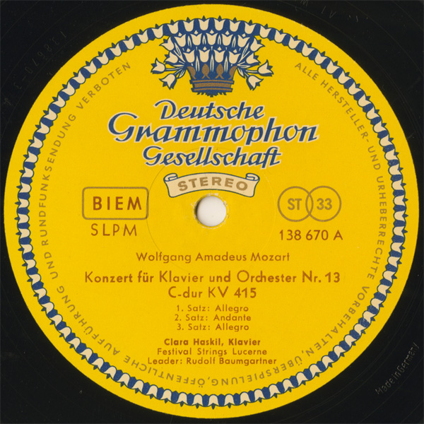 クララ・ハスキル(pf) ルドルフ・バウムガルトナー(cond) ルツェルン祝祭o.