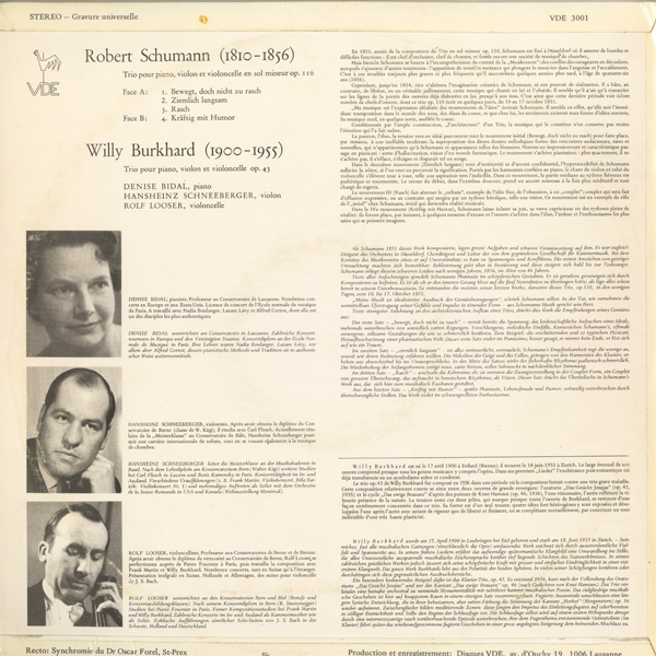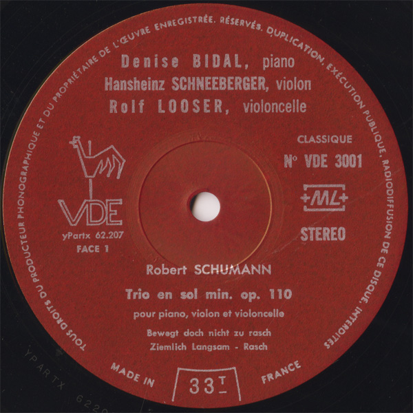 ドゥニーズ・ビダル(pf) ハンスハインツ・シュネーベルガー(vn) ロルフ・ローサー(vc)