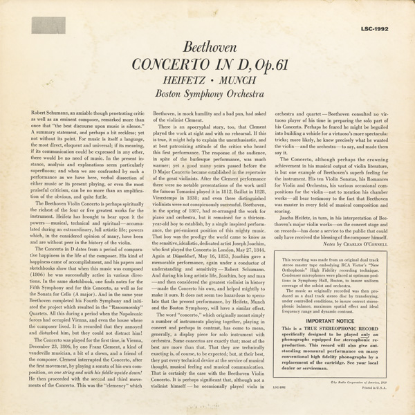 ヤッシャ・ハイフェッツ(vn) シャルル・ミュンシュ(cond) ボストンso.