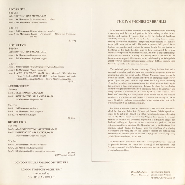 ブラームス 『交響曲全集』交響曲第1番~4番〔op. 68,73,90,99〕 ,《アルト・ラプソディ》op. 53,悲劇的序曲 op. 81,大学祝典序曲 op. 80