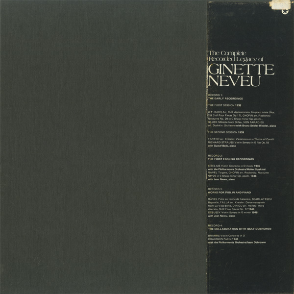 ジネット・ヌヴー(vn) ワルター・ジュスキント,イサイ・ドブロウェン(cond) ジャン・ヌヴー(pf) 他