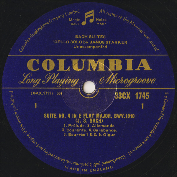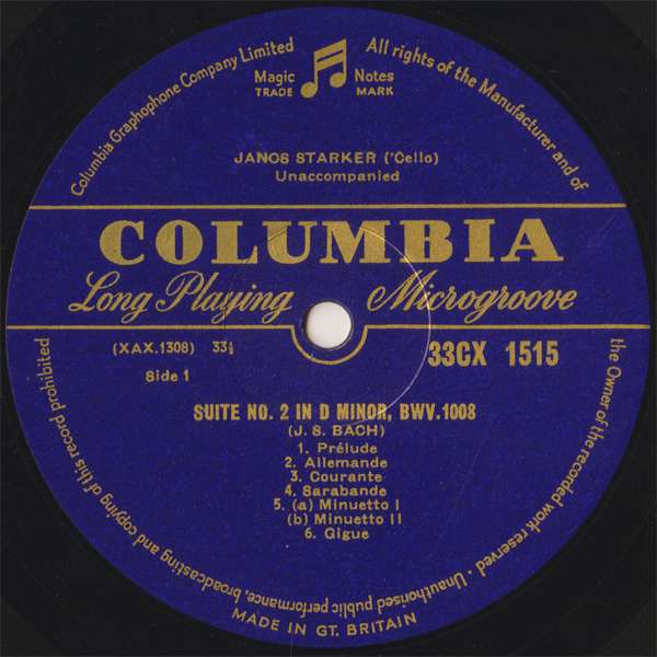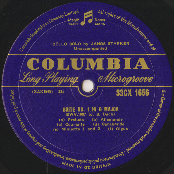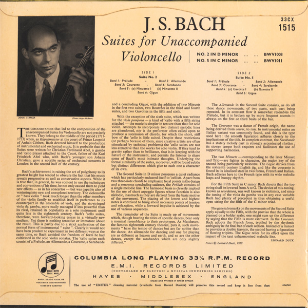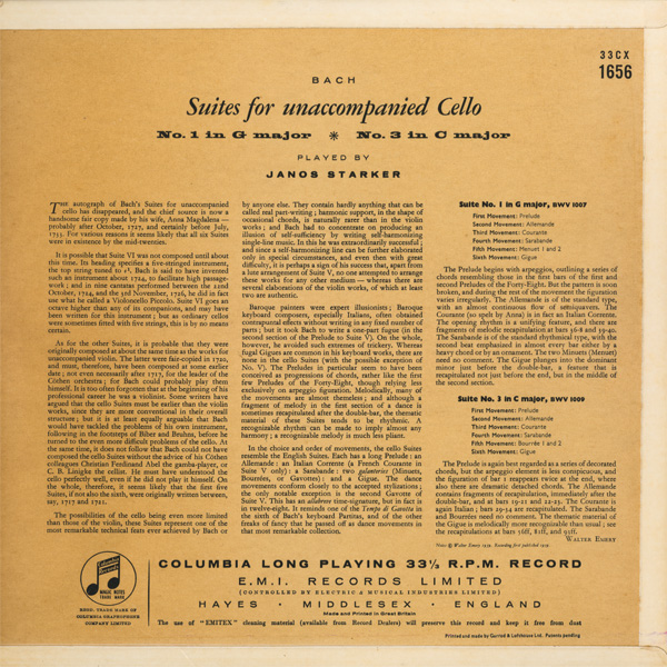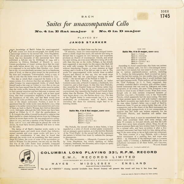 無伴奏チェロ・モノラル録音の一つの到達点,3枚目にステレオテイクがあるがもちろん当時は未発売(最近の再発でステレオ盤が初出となった)