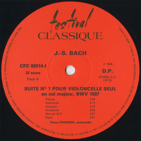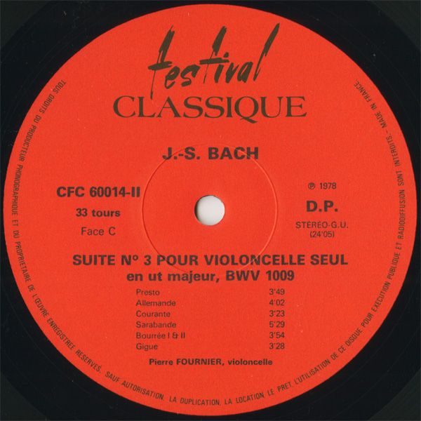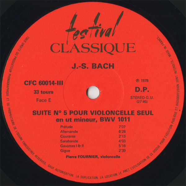 フルニエもう一つの無伴奏,より自由で幻想的な演奏となっているが、枯れるどころか若々しさすら感じてしまう,当たり前といえば当たり前だが録音はArchiveには及ばない,驚くべきことにアメリカや日本でも発売された(音は…)