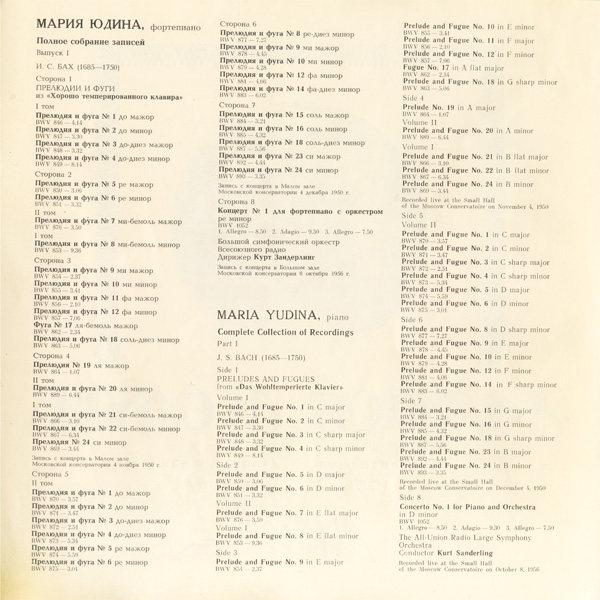 初出の音源,《平均律》はテスト録音のような劣悪な音だが(一度別の録音が混ざったりもする) ユーディナの傑物ぶりは少しも揺るがない,否応なく惹き込まれてしまう演奏,多少の浅いキズによる軽ノイズ