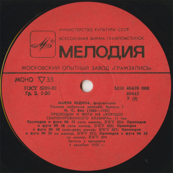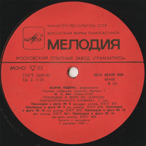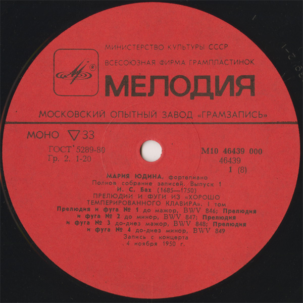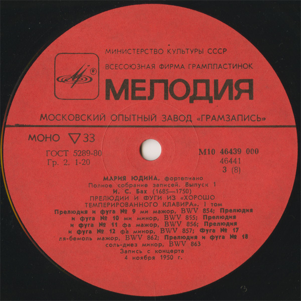初出の音源,《平均律》はテスト録音のような劣悪な音だが(一度別の録音が混ざったりもする)
