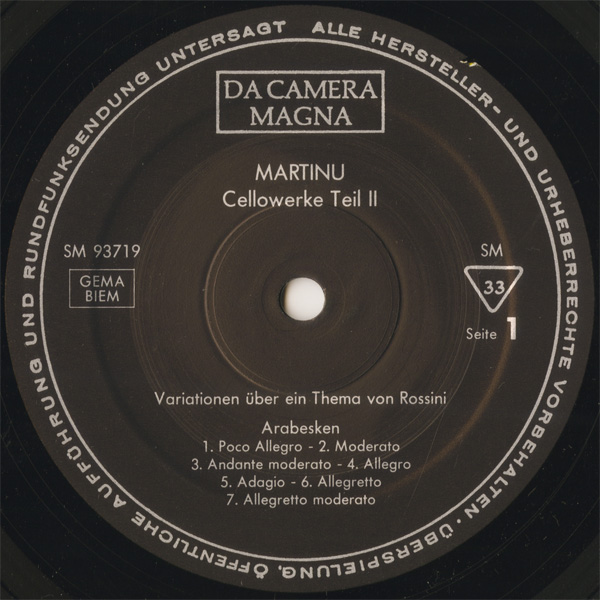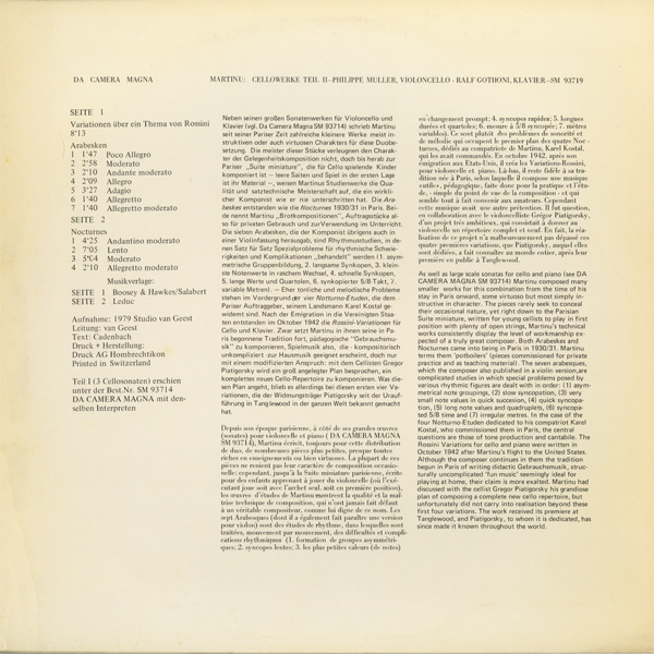 マルティヌー 『チェロ作品集2』ロッシーニの主題による変奏曲,7つのアラベスク,4つの夜想曲