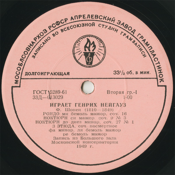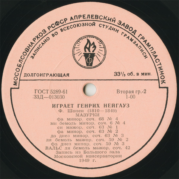 ピンク-聖火,FD,穴開き紙ジャケット,初出盤の一つ,1949年モスクワ音楽院大ホールでの演奏会録音
