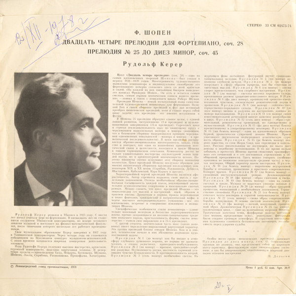 ジャケットに裏にサイン,Melodiyaらしい彫りの深いステレオ録音,数ヶ所軽めのキズによるノイズ少々,ジャケット背破れ他多少傷み
