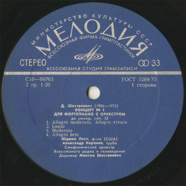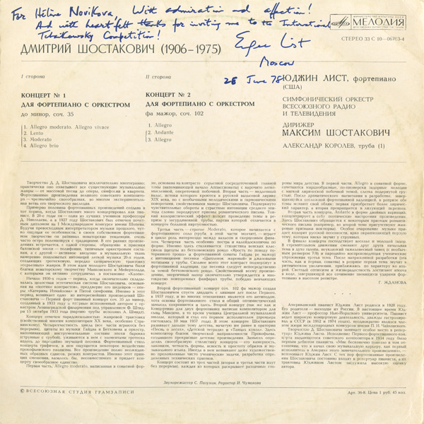 ユージン・リスト(pf) マクシム・ショスタコーヴィチ(cond) USSR放送so. アレクサンドル・コロリョフ(tp)