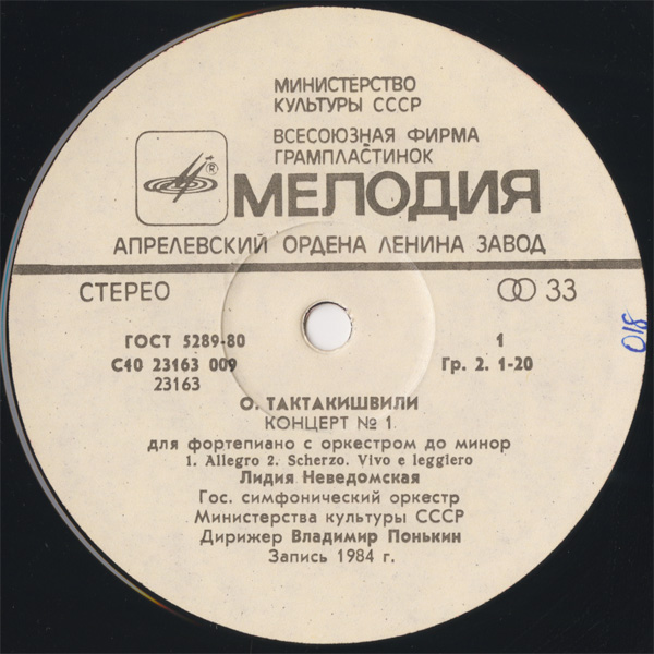 リディヤ・ネヴェドムスカヤ(pf) ウラディーミル・ポンキン(cond) USSR文化省so.