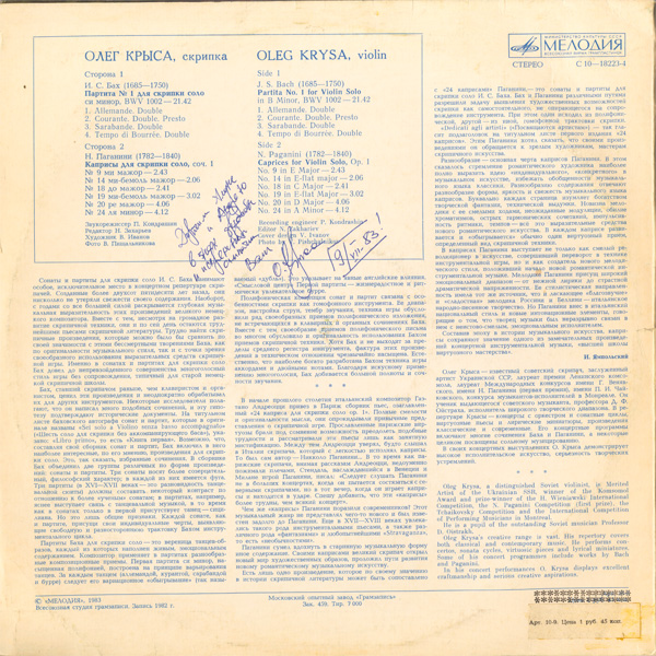 ジャケット裏に献辞とサイン,おそらく唯一の無伴奏作品録音