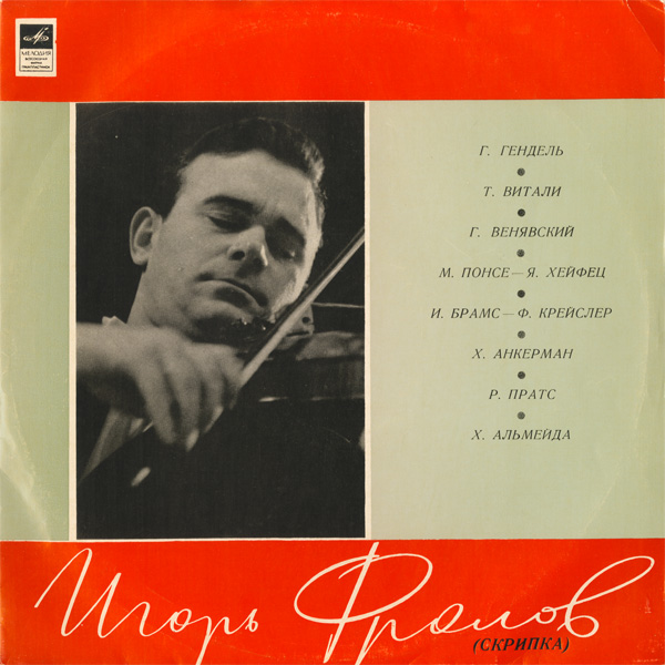 ヘンデル ヴァイオリン・ソナタ第4番 op. 1-13, ヴィターリ(シャルリエ編) シャコンヌ,ヴィエニアフスキ 伝説曲 op. 17,マズルカ《クヤヴィアク》op. 3, ポンセ(ハイフェッツ編) エストレリータ,メキシコのセレナーデ,ブラームス(クライスラー編) ハンガリー舞曲第17番,H. アンカーマン(フロロフ編) キューバの歌,R. プラッツ(フロロフ編) マリアの歌 ,J. アルメイダ(フロロフ編) キューバ舞曲