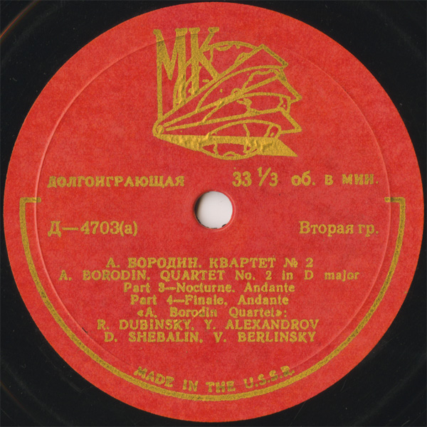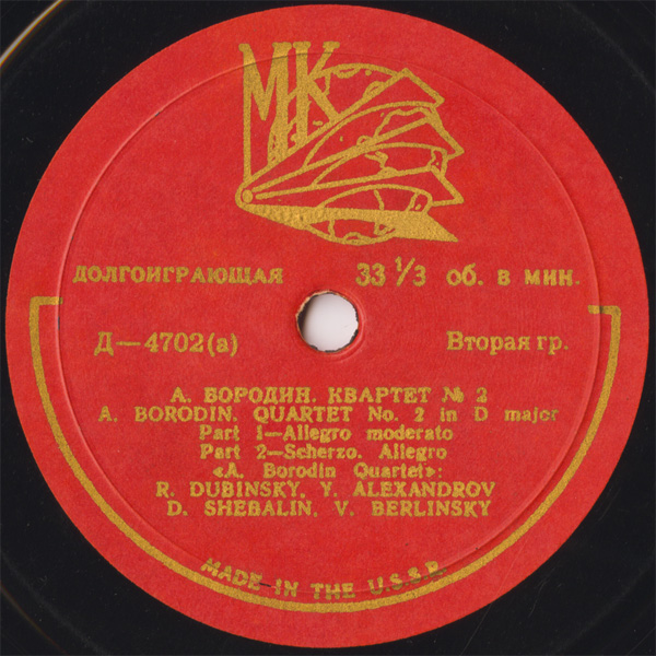 ボロディン四重奏団(ドゥビンスキー,アレクサンドロフ,シェバリン,ベルリンスキー)