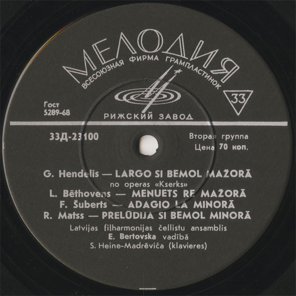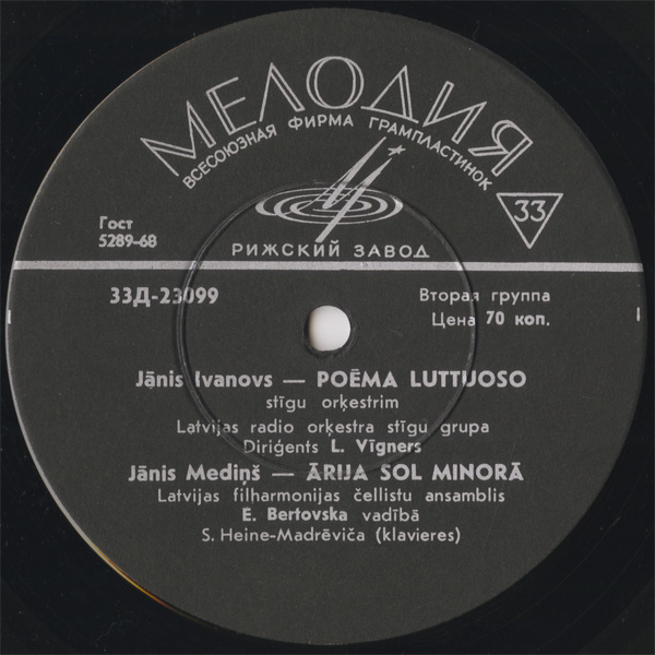 レオニード・ヴィグネルス(cond) ラトヴィア放送弦楽Ens. エルネスタス・ベルトフスキス(cond) ラトヴィアpo. チェロEns. シルヴィヤ・ハイネ=マドレヴィツァ(pf)