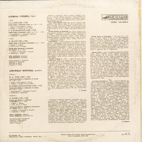 アルギルダス・ヴィズギルダ(fl) ユリウス・アンドレイヴァス(cemb) ユルギス・バネヴィーチュス(vc)
