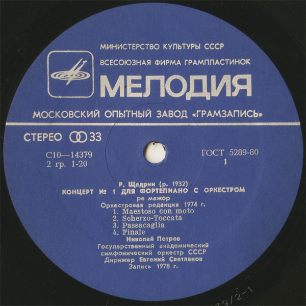 ニコライ・ペトロフ(pf) エフゲニー・スヴェトラーノフ(cond) USSR国立so. ゲンナジー・ロジェストヴェンスキー(cond) USSR放送so. Cho. リュドミラ・ベロブラギナ(s) リュドミラ・ジーキナ(a) アルトゥール・エイゼン(bs) 他