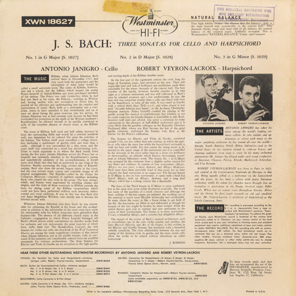 バッハ 3つのチェロ・ソナタ BWV 1027~9