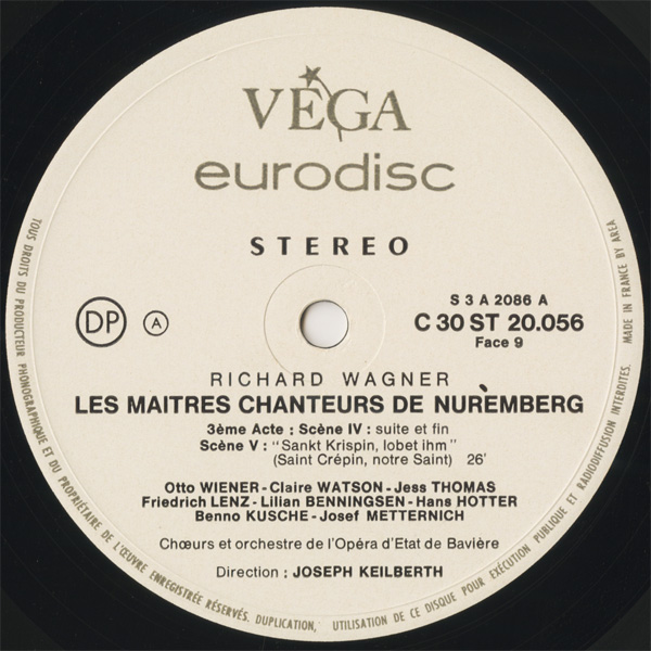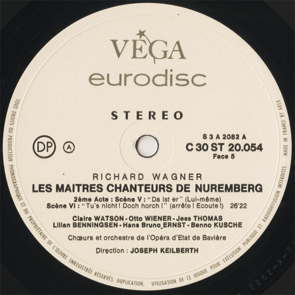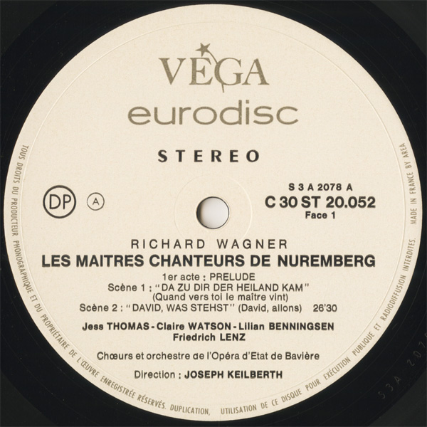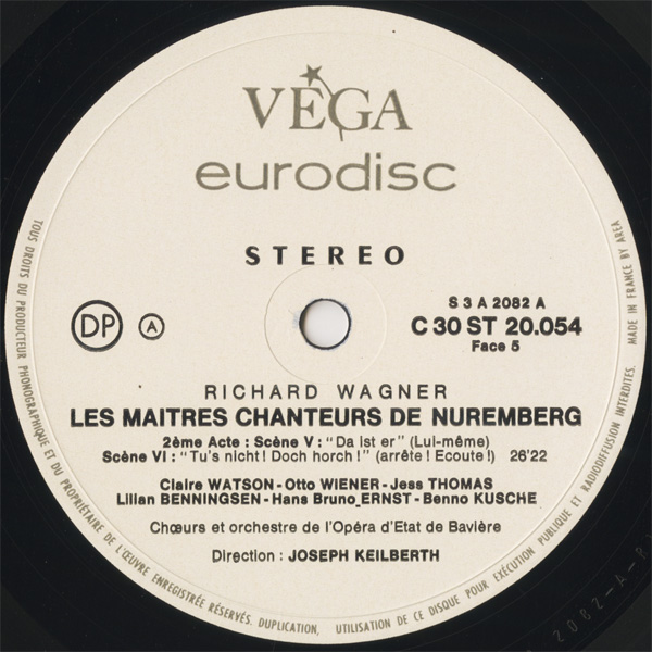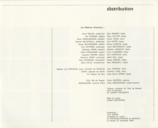 ヨゼフ・カイルベルト(cond) バイエルン国立歌劇場o. cho. オットー・ヴィーナー,ハンス・ホッター(bs) デヴィット・ソー(t) カール・ホッペ,ベンノ・クッシェ,ヨゼフ・メッテルニヒ(bs) ジェス・トーマス,フリードリヒ・レンツ(t) クレア・ワトソン(s) リリアン・ベニングセン(ms) 他