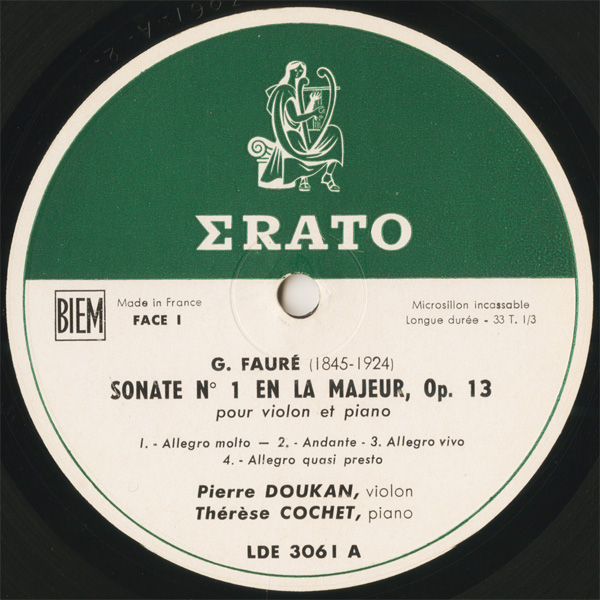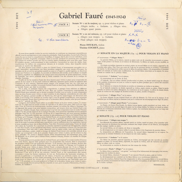 フォーレ ヴァイオリン・ソナタ第1番 op. 13,2番 op. 108