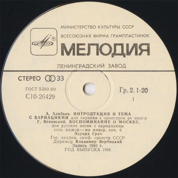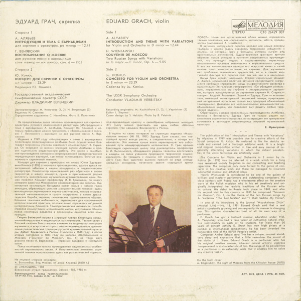 エドゥアルド・グラッチ(vn) ウラディーミル・ヴェルヴィツキー(cond) USSR国立so.