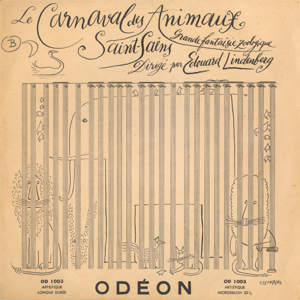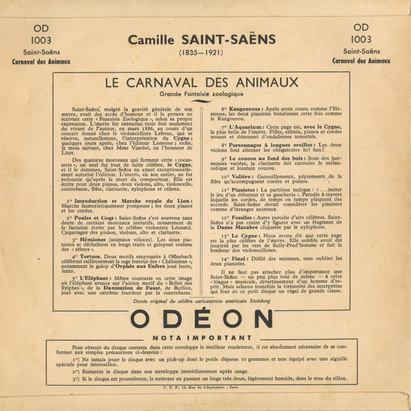 スタインバーグによる素晴らしいイラストジャケット,《動物の謝肉祭》は名演奏家の参加が多いが、この盤も錚々たるメンバー,浅いキズ少々,ジャケットにBの書込み