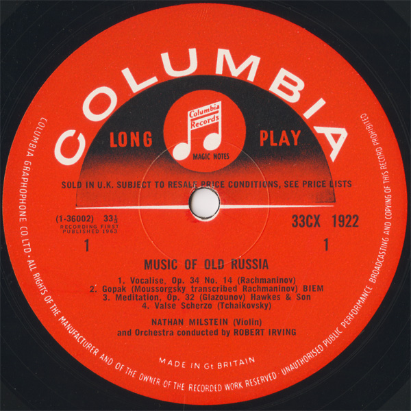 『古きロシアの音楽』ラフマニノフ ヴォカリーズ op. 34-14,ムソルグスキー(ラフマニノフ編) ゴパック,グラズノフ 瞑想曲 op. 32,チャイコフスキー ワルツ=スケルツォ op. 34,(グラズノフ編)《なつかしい土地の思い出》より〔瞑想曲,スケルツォ〕,リムスキー=コルサコフ(クライスラー編) ロシアの主題による幻想曲 op. 33
