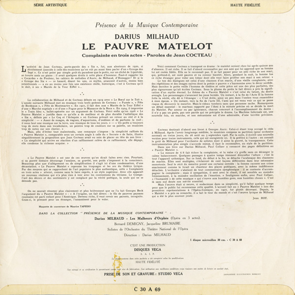 ダリウス・ミヨー(cond) パリ・オペラ座o. ジャクリーヌ・ブルメール(s) ジャン・ジロドー(t) グザヴィエ・ドゥプラ(bs) アンドレ・ヴェシエレ(br) 他