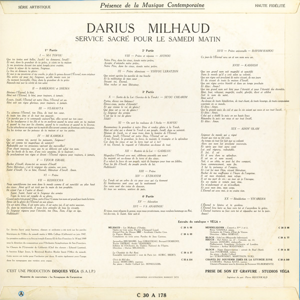 ミヨーには珍しいユダヤ教典礼曲,おそらく初録音