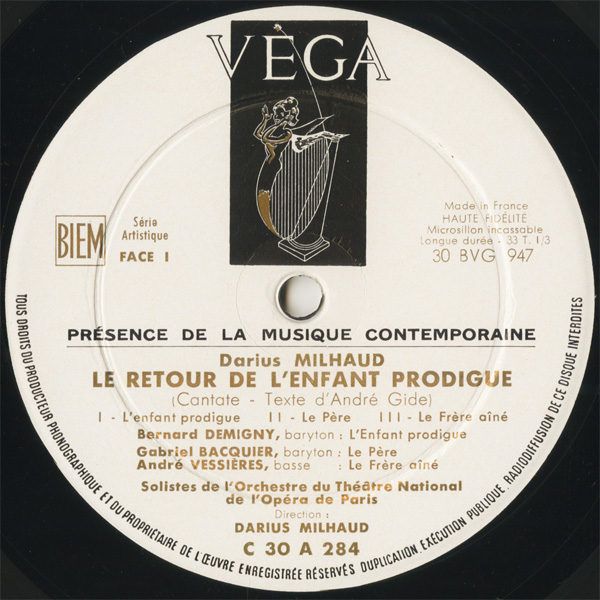 ダリウス・ミヨー(cond) パリ・オペラ座o. ベルナール・デミニ(br) ジャニヌ・コラール(s) ガブリエル・バッキエ(br) アンドレ・ヴェシエレ(br) ミシェル・カロン(t) 他