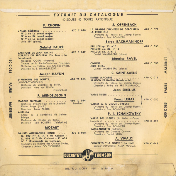 フォーレ エレジー op. 24,ロマンス op. 69,マスネ エレジー op. 10-5