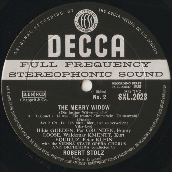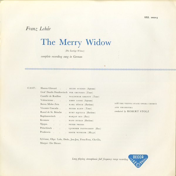ロベルト・シュトルツ(cond) ウィーン国立歌劇場o. cho. ヒルデ・ギューデン(s) ペル・グルンデン(t) エミー・ローゼ(s) ワルデマール・クメント(t) カール・デンヒ(br) ペーター・クライン(t) 他