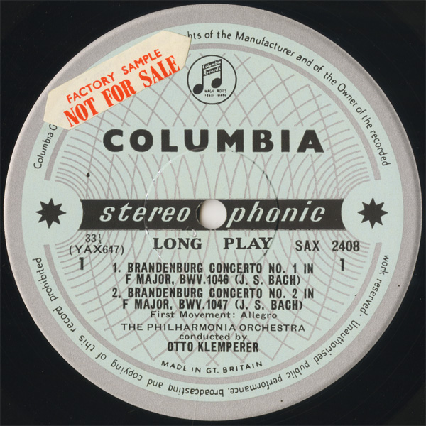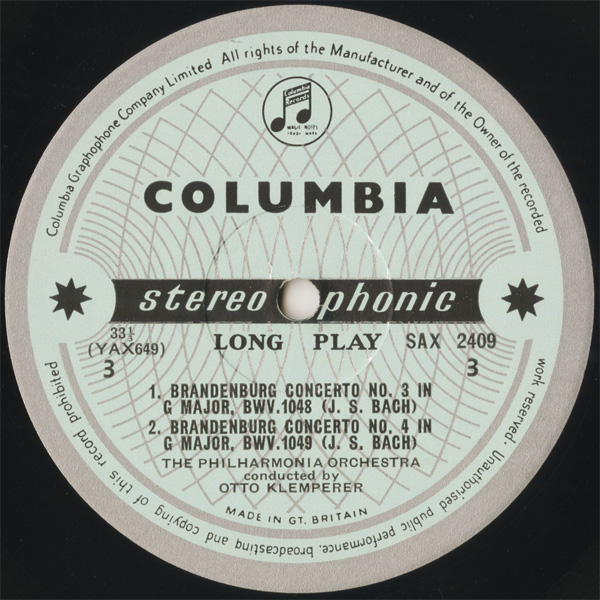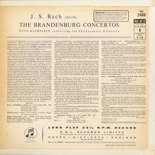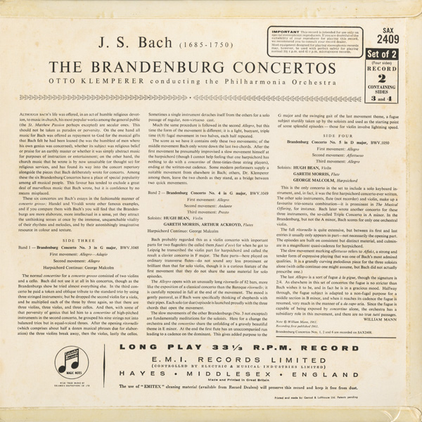 オットー・クレンペラー(cond) po. ヒュー・ビーン(vn) ギャレス・モリス,アーサー・アクロイド(fl) アラン・シビル(hr) ジョージ・マルコム(cemb) 他