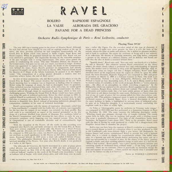 話題?のリーダーズ・ダイジェスト盤とは別のモノラル録音,パヴァーヌのみにソリスト、リュシアン・テヴェと表記,レヴィットの中でも個性的な(そしてかなり怖い)ジャケットデザイン