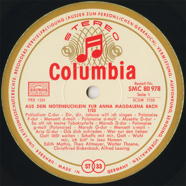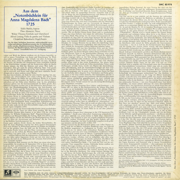 エディット・マティス(s) テオ・アルトマイヤー(t) ワルター・テーネ(cemb) アルフレート・レシング(gamb) クリストフリート・ビッケンバッハ(org-pos)